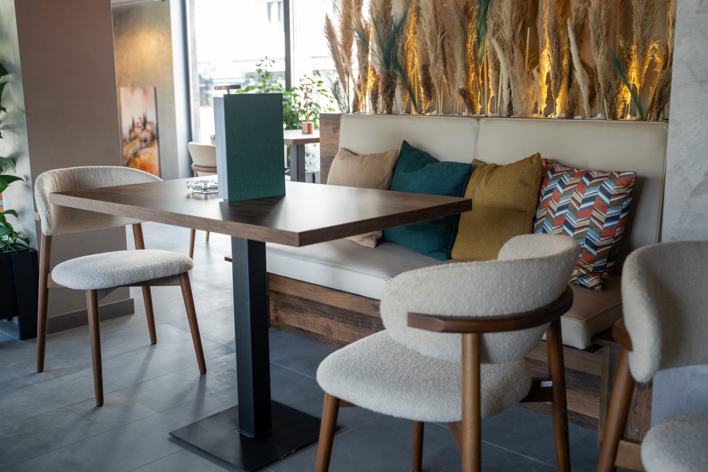 Stolice su birane u skladu sa enterijerom i atmosferom prostora. Kombinacija dizajna i funkcionalnosti pruža prijatan ambijent za goste.